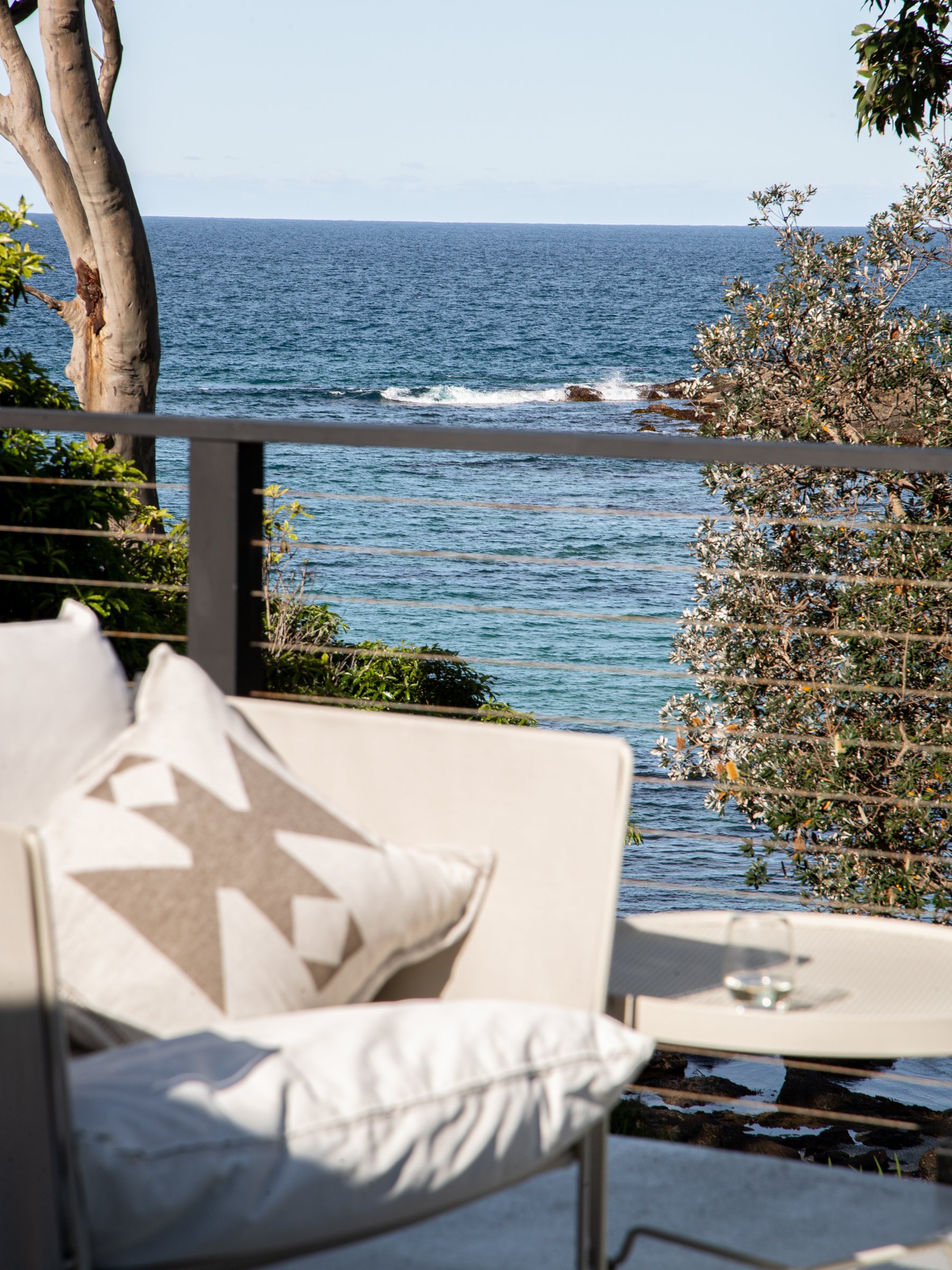 This deck is where I find myself gravitating to. Where I spend most of my stay. It has everything that matters – a long table for meals that stretch for hours, a low lounge for books and wine, tea or silence. When I arrive, I pour myself a glass of wine and sit. The waves move in their steady rhythm, the breeze drifts through the trees, and before I realise it, two hours have passed and the sun is beginning to lower. This is the feeling I’ve come for. The quiet shift from doing to simply being.